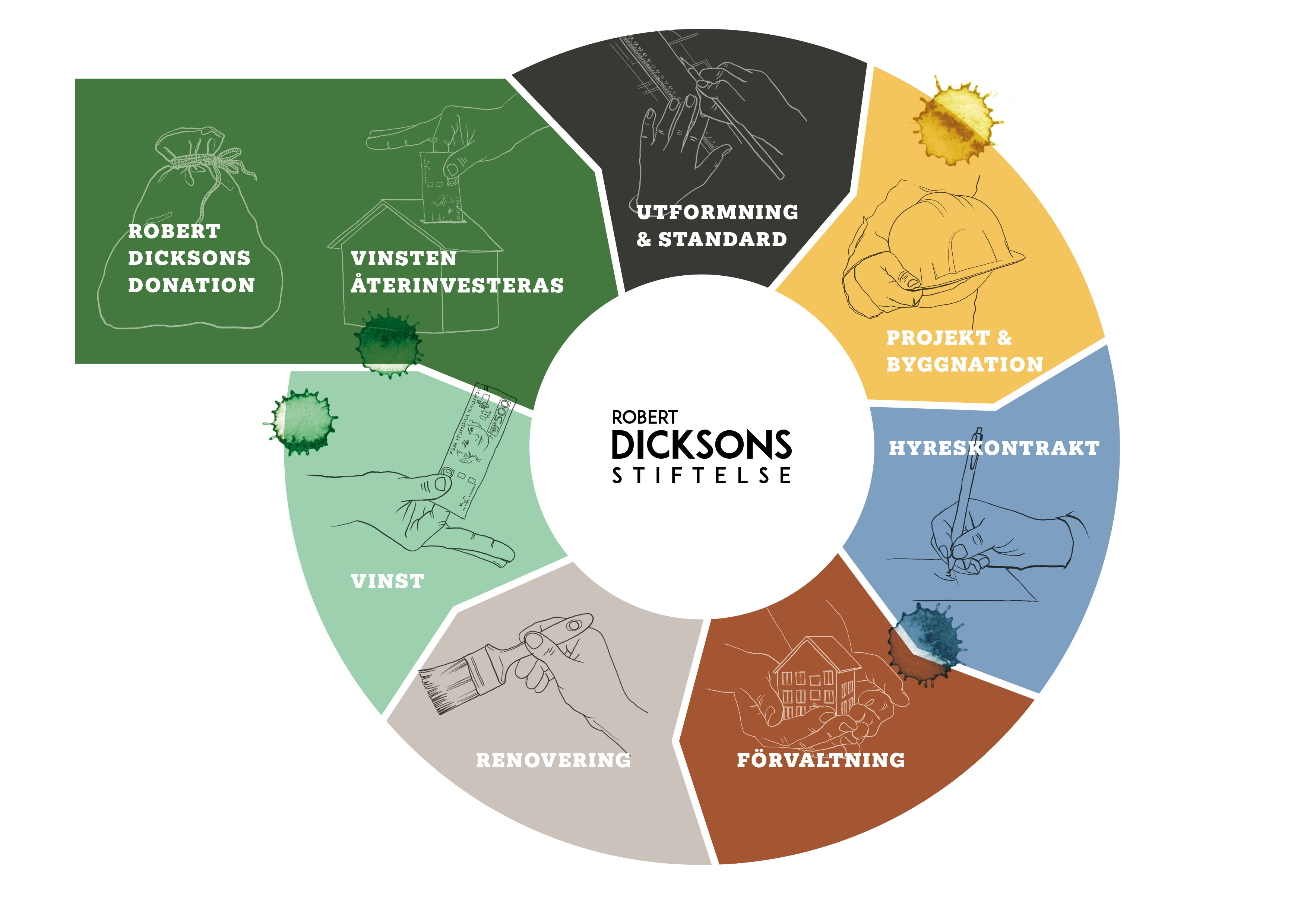 Enligt stiftelsen stadgar ska vinst från verksamheten användas i ett evigt kretslopp för att kunna bygga nya fastigheter. Robert Dickson hade helt enkelt ett hållbarhetstänk som låg långt före sin tid.
